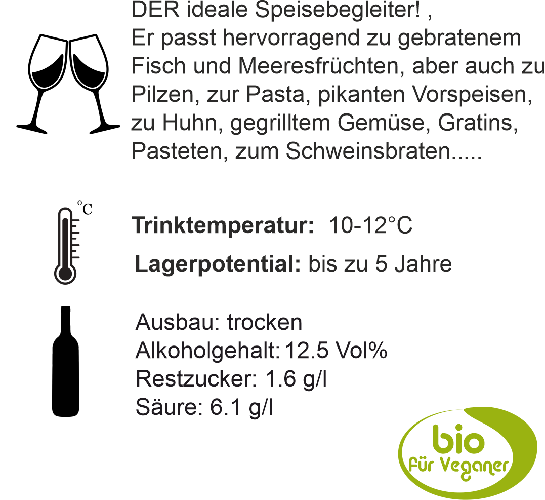 Ein toller Chardonnay vom Goldberg, der durch seine Frucht sowie Eleganz begeistert und viel Trinkfreude bereitet, aber auch als Speisebegleiter sehr vielfältig einsetzbar ist