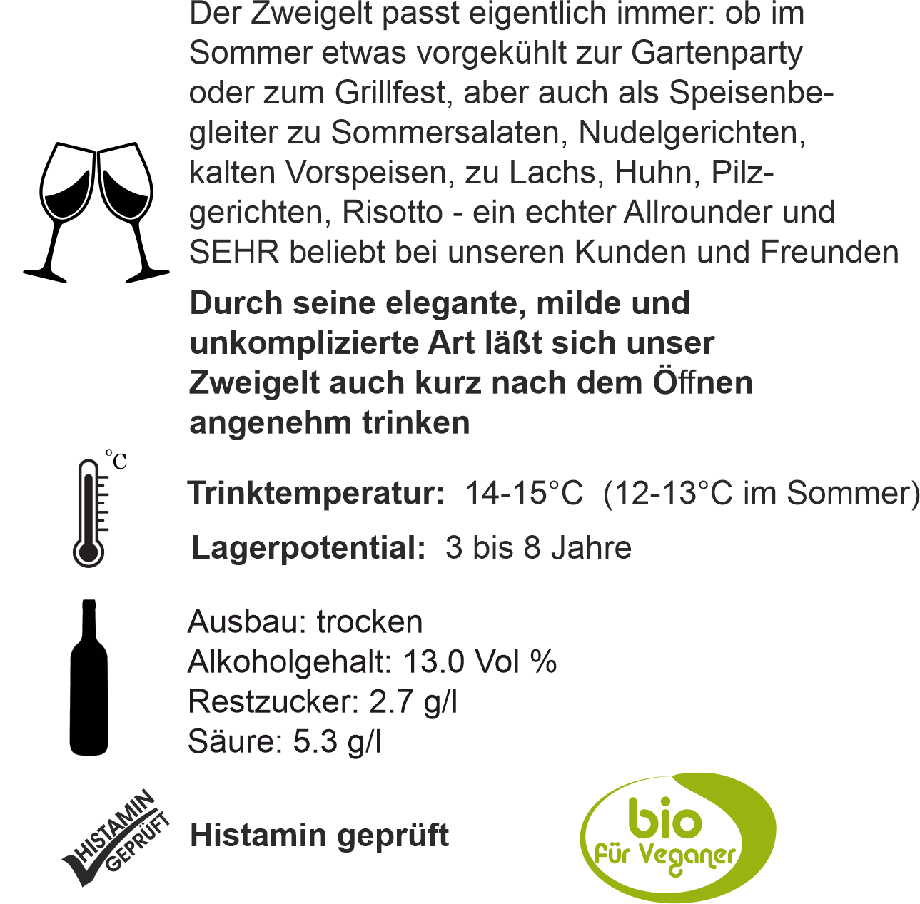 Ein klassischer, extrem fruchtiger Zweigelt – unkompliziert, mild und elegant- ein Rotwein, der von Vielen geschätzt wird und eigentlich Immer und Überall passt